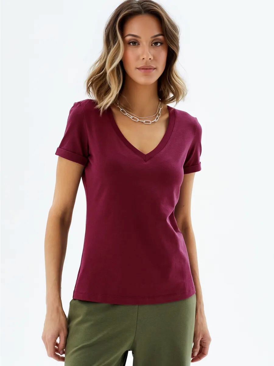 1015K1 Футболка с глубоким V-вырезом HIGH TEMP, Брусничный, 42/44
