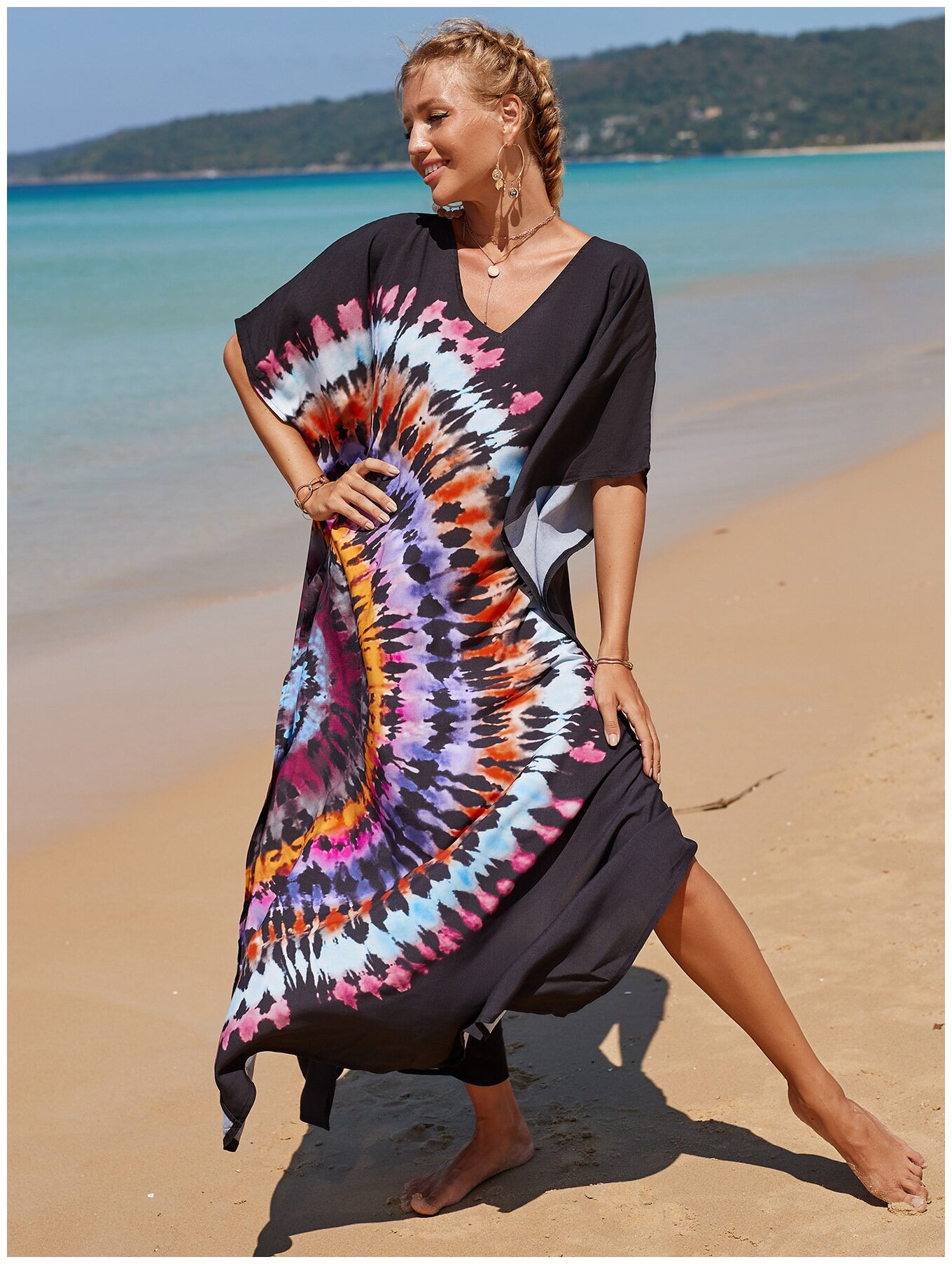Туника пляжная яркая разноцветная. Разноцветная. Длинна 140. Размер 44-52