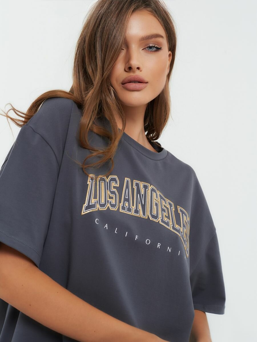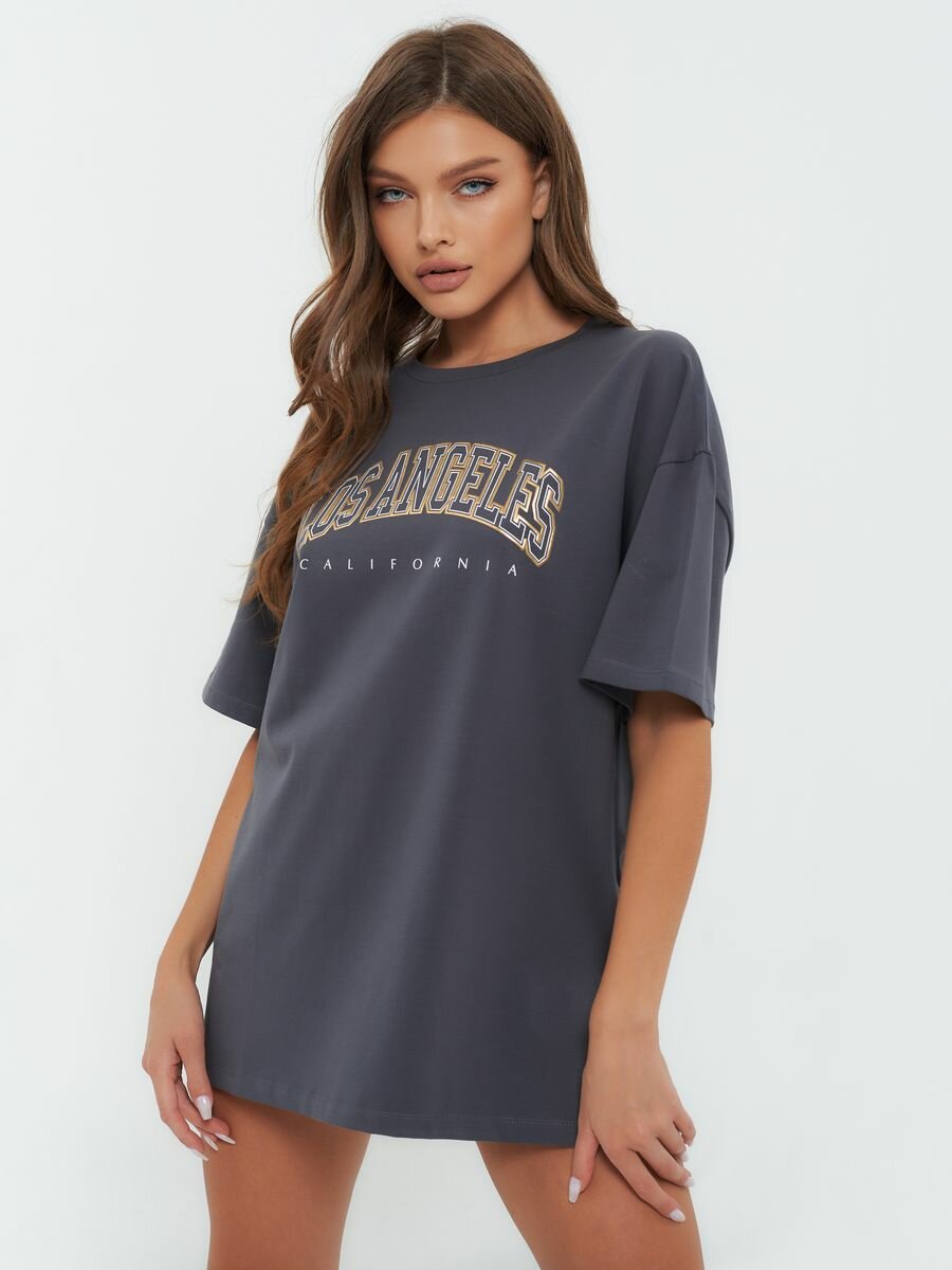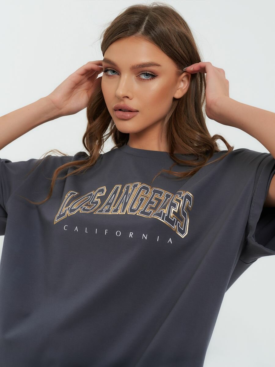 Футболка оверсайз с принтом Los Angeles y2k Little Secret uz300187темно-серыйONE-SIZE интересное: