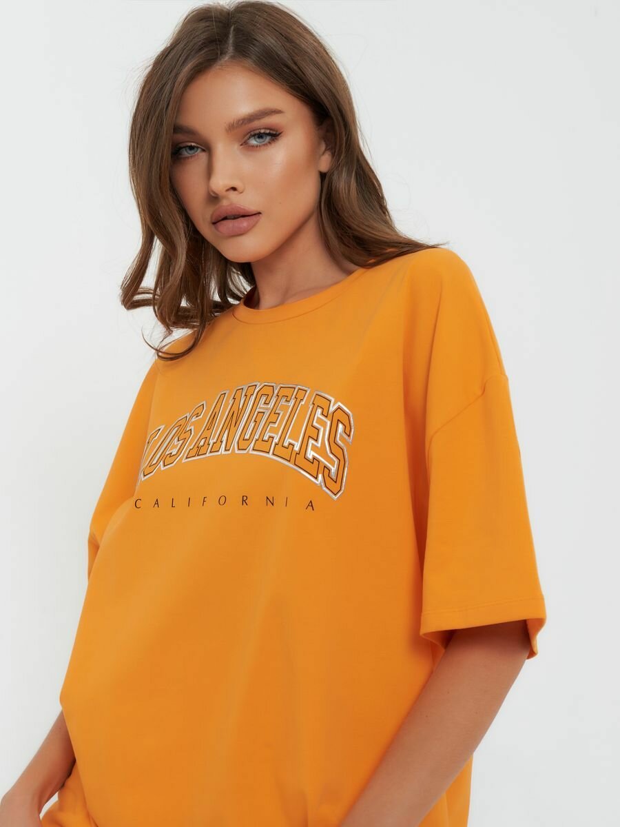 Купить Футболка оверсайз с принтом Los Angeles y2k Little Secret uz300187MNZ2071оранжевыйONE-SIZE