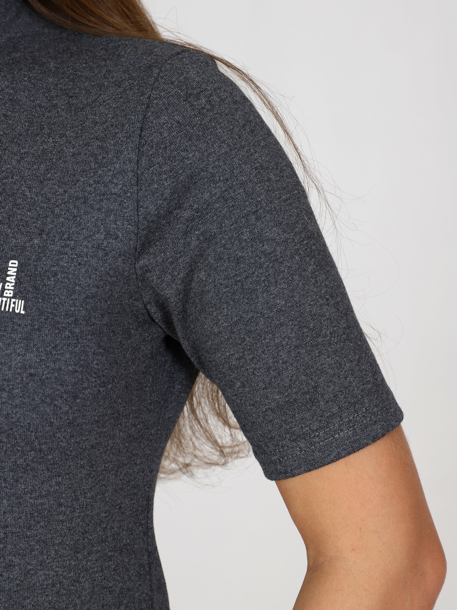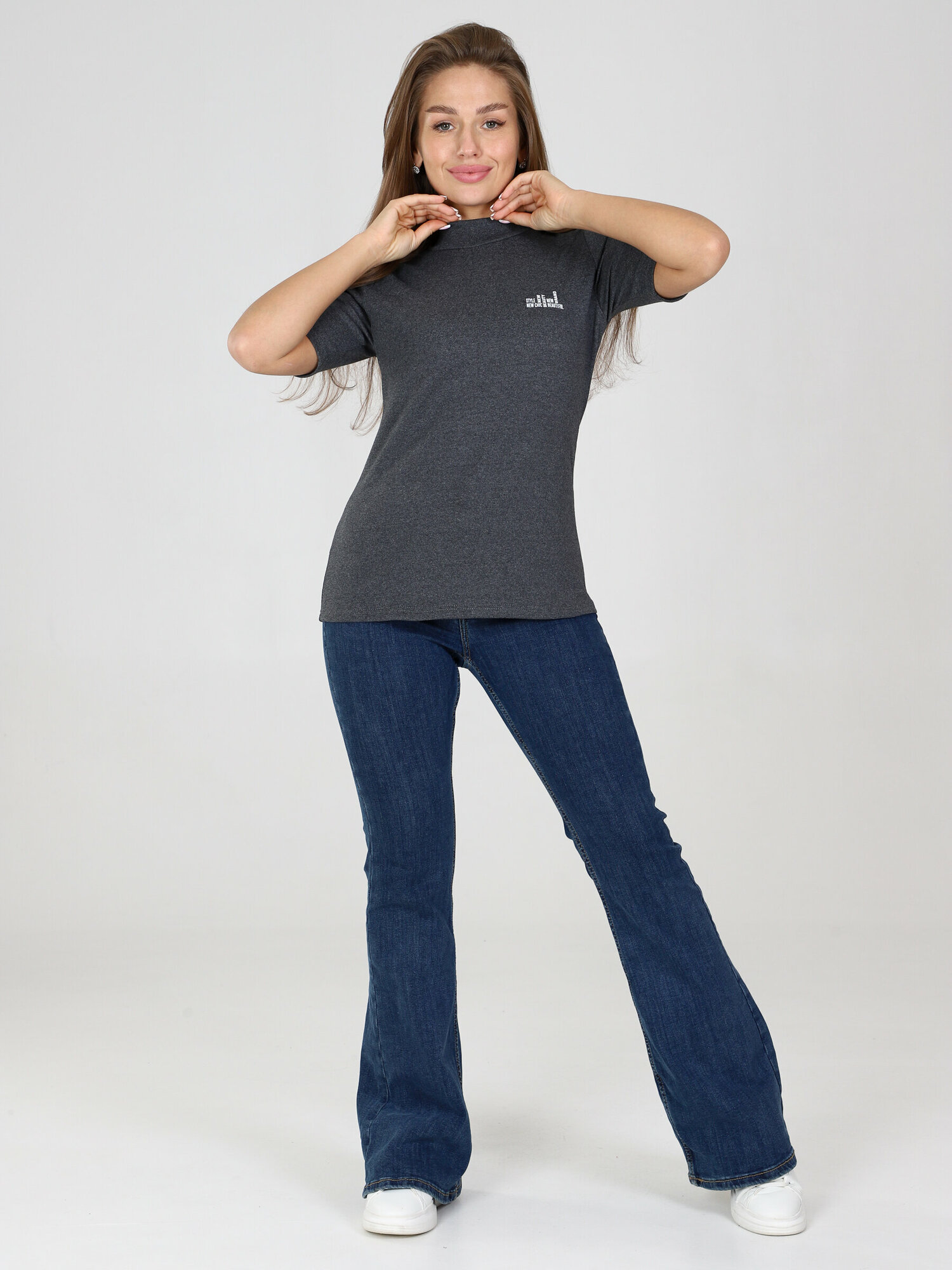 Футболка женская с принтом хлопок с надписью Бонус антрацитовый IvCapriz 50