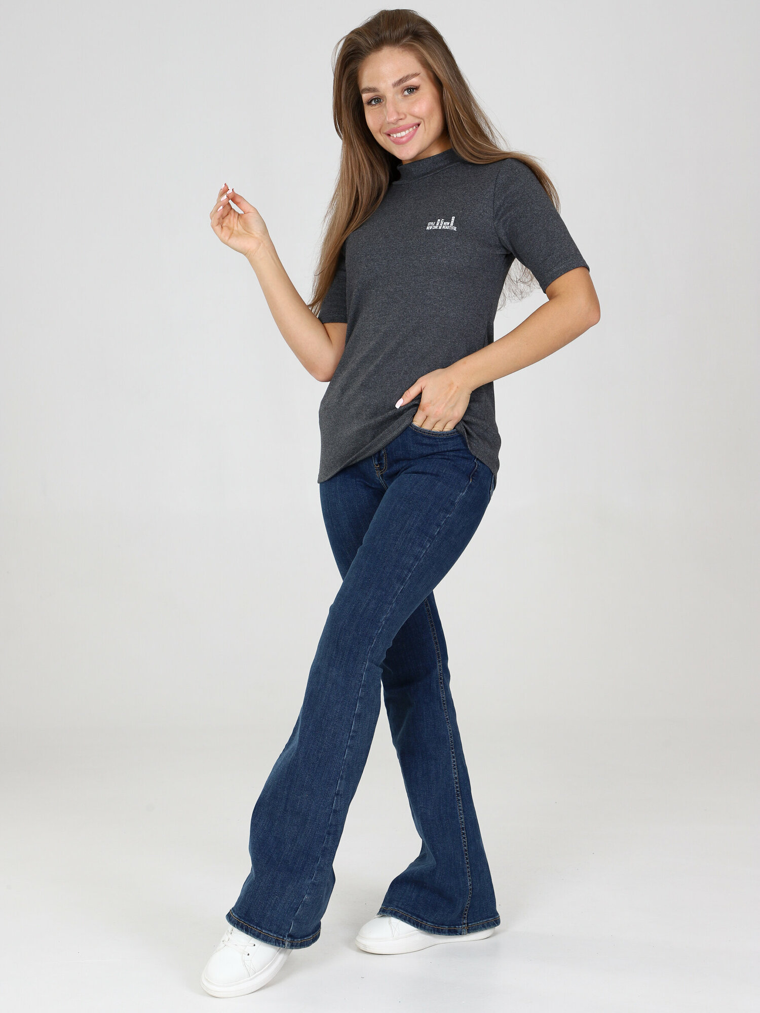 Купить Футболка женская с принтом хлопок с надписью Бонус антрацитовый IvCapriz 48