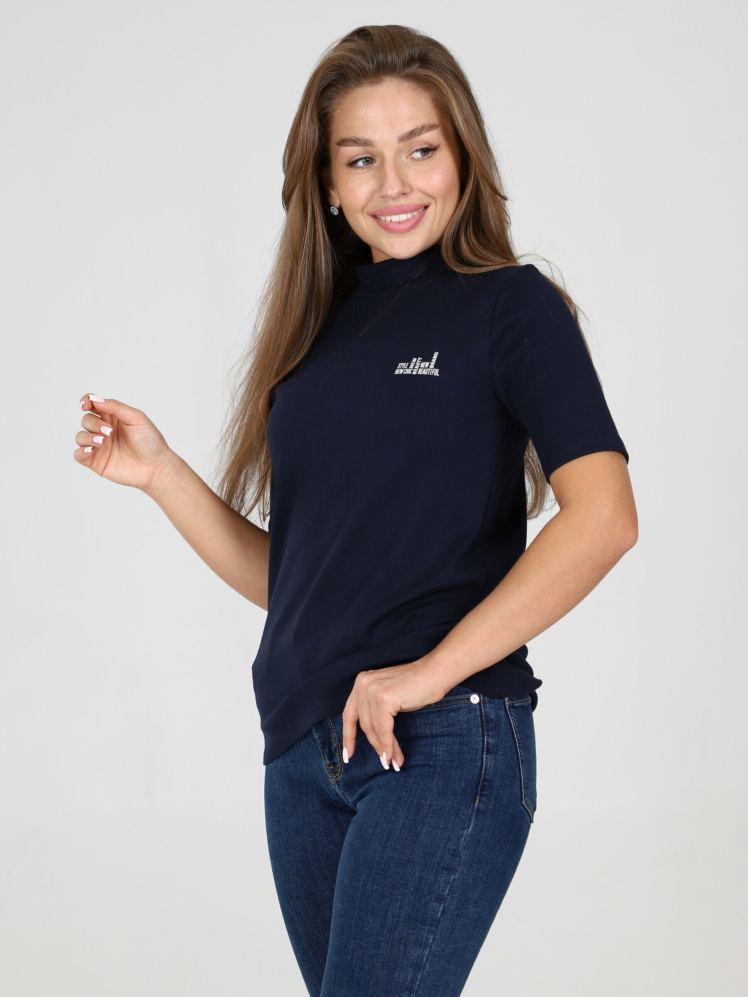 Футболка женская с принтом хлопок с надписью Бонус синий IvCapriz 44