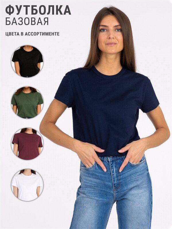 Футболка женская однотонная хлопок Апрель 1ЖДФК2656001/1190/1902/*/*/*/*/* синий 96-164