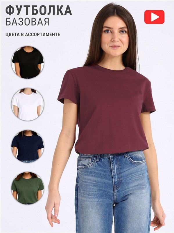 Футболка женская однотонная хлопок 100% Апрель 1ЖДФК2656001/1190/1933/*/*/*/*/* бордовый,красный 96-164