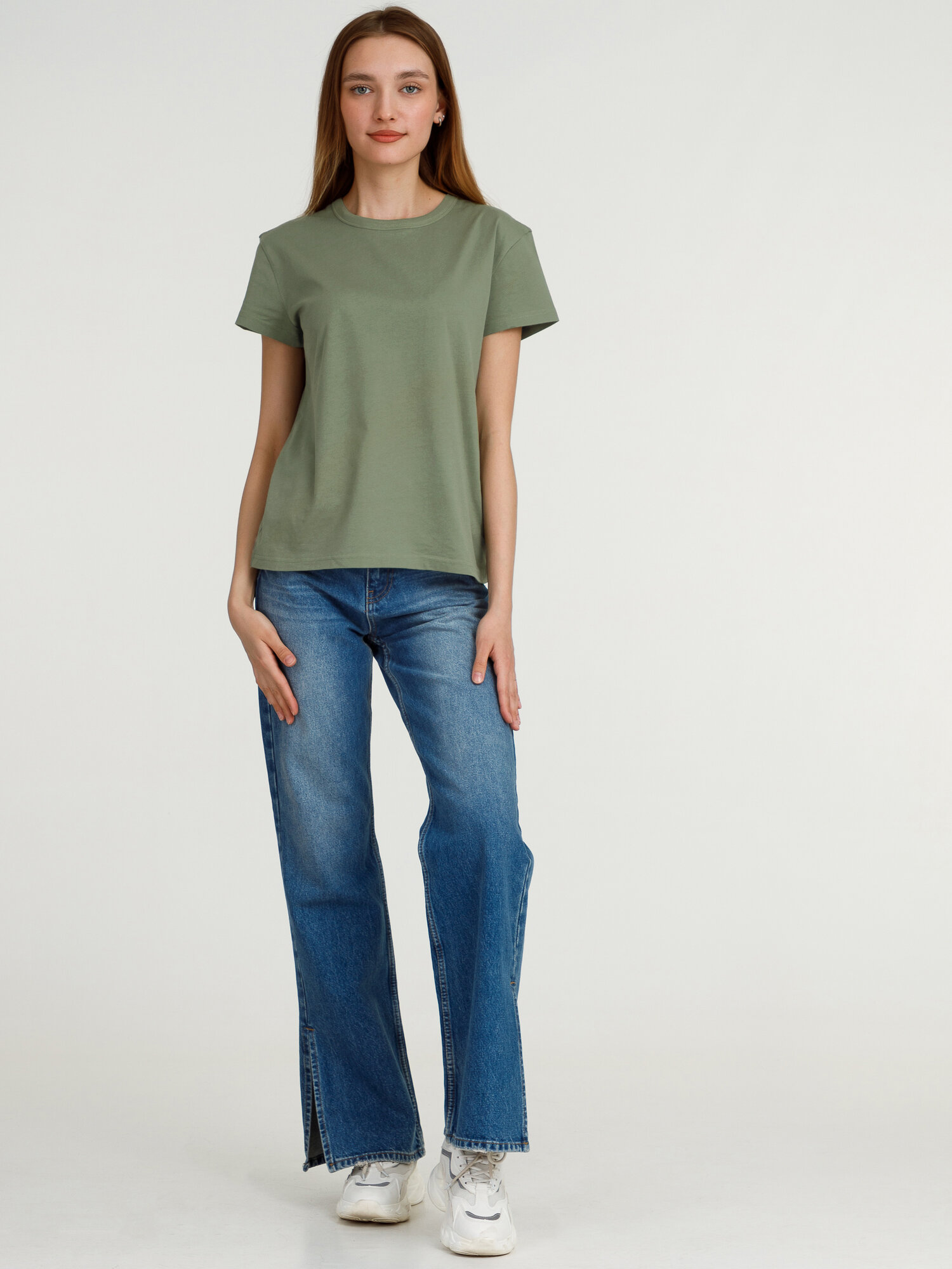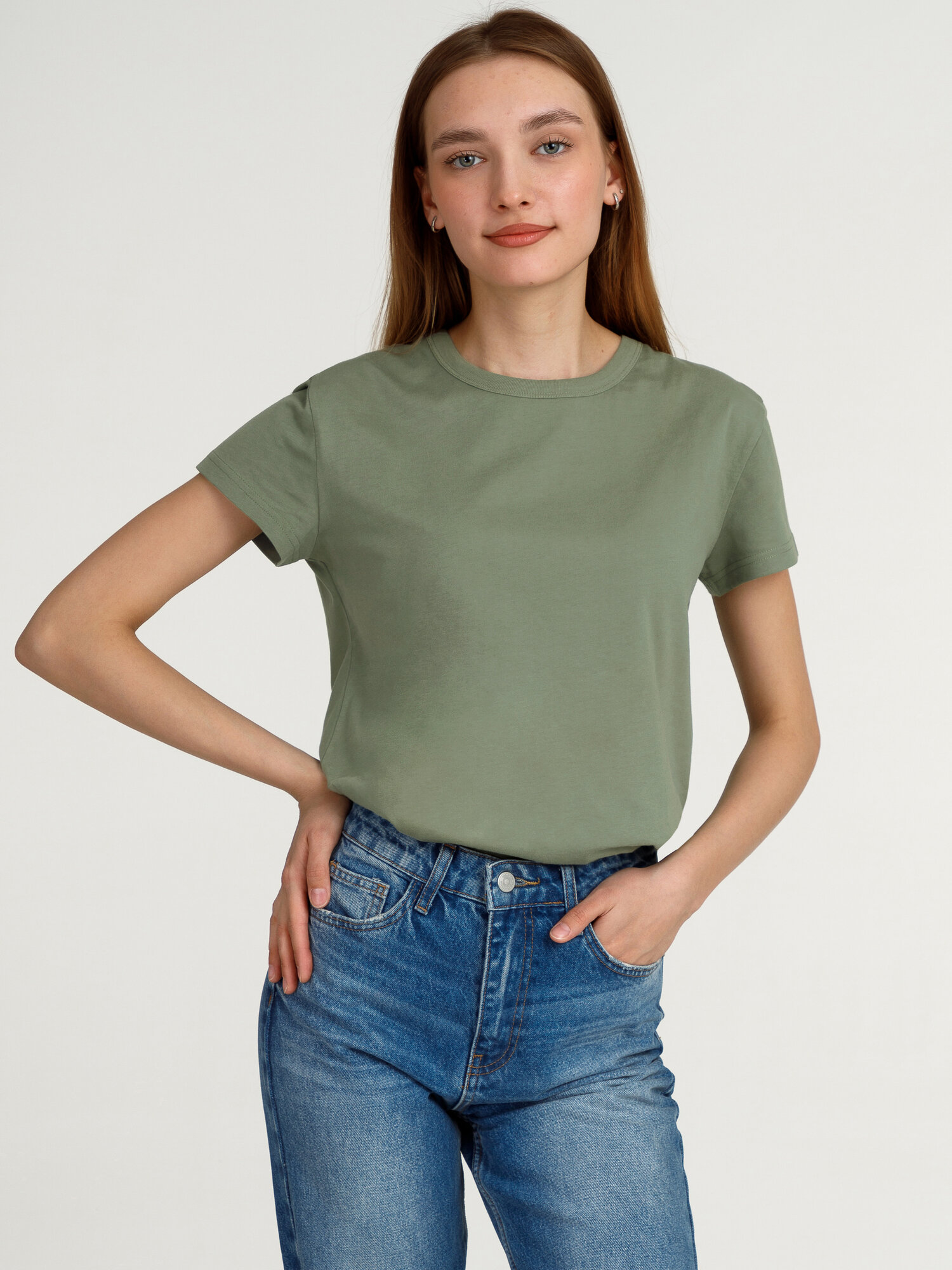 Футболка женская однотонная хлопок 100% Апрель 1ЖДФК3967001/1354/1945/*/*/*/*/* зеленый,хаки 96-164