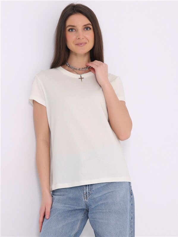 Купить Футболка женская однотонная хлопок 100% Апрель 1ЖДФК3967001/1354/1912/*/*/*/*/* экрю 88-164