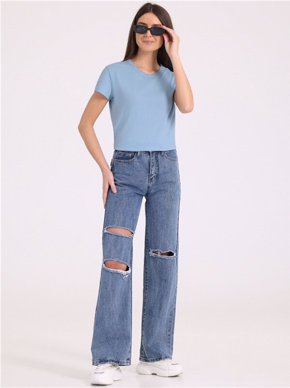 Футболка женская однотонная базовая Апрель 1ЖДФК3967001//1354/2219/*/*/*/*/* голубой 100-164