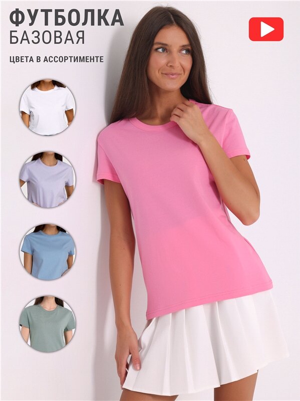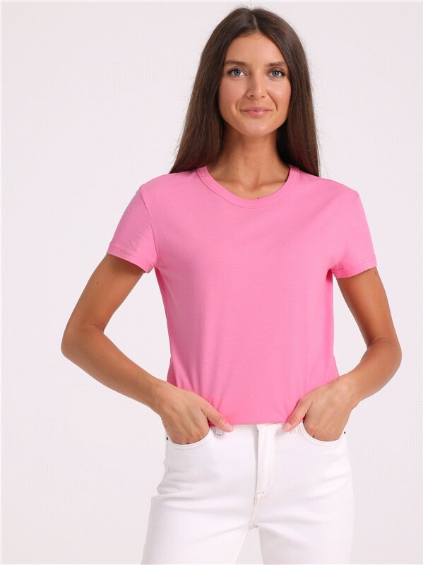 Футболка женская базовая однотонная хлопок 100% Апрель 1ЖДФК3967001/1354/2506/*/*/*/*/* розовый,фуксия 84-164