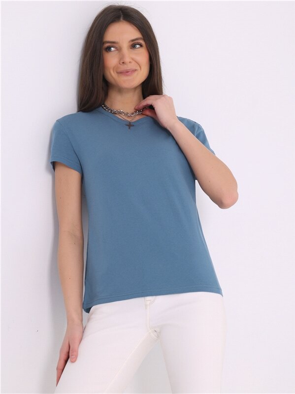 Футболка женская однотонная базовая Апрель 1ЖДФК3967001//1354/2219/*/*/*/*/* голубой 96-164