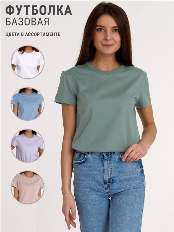 Футболка женская однотонная хлопок 100% Апрель 1ЖДФК3967001/1354/1945/*/*/*/*/* зеленый,хаки 96-164
