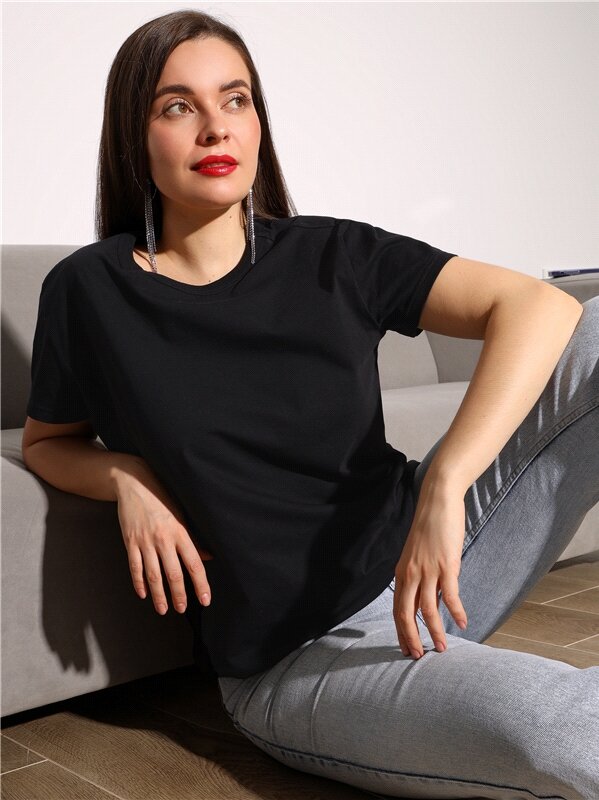 Футболка женская черная однотонная хлопок Апрель 1ЖДФК4110001/1354/599/*/*/*/*/* черный 108-164