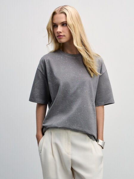 Zarina Футболка оверсайз со стиркой, цвет Серый, размер S (RU 44), 4328526426-32