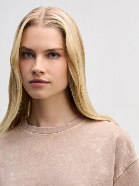 Купить Zarina Футболка оверсайз со стиркой, цвет Бежевый, размер S (RU 44), 4328526426-62