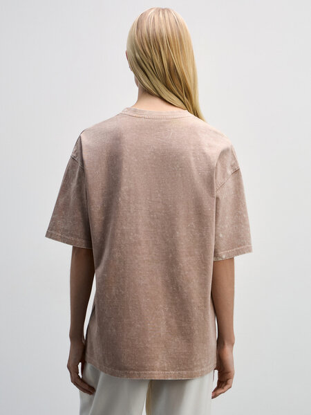Zarina Футболка оверсайз со стиркой, цвет Бежевый, размер XL (RU 50), 4328526426-62