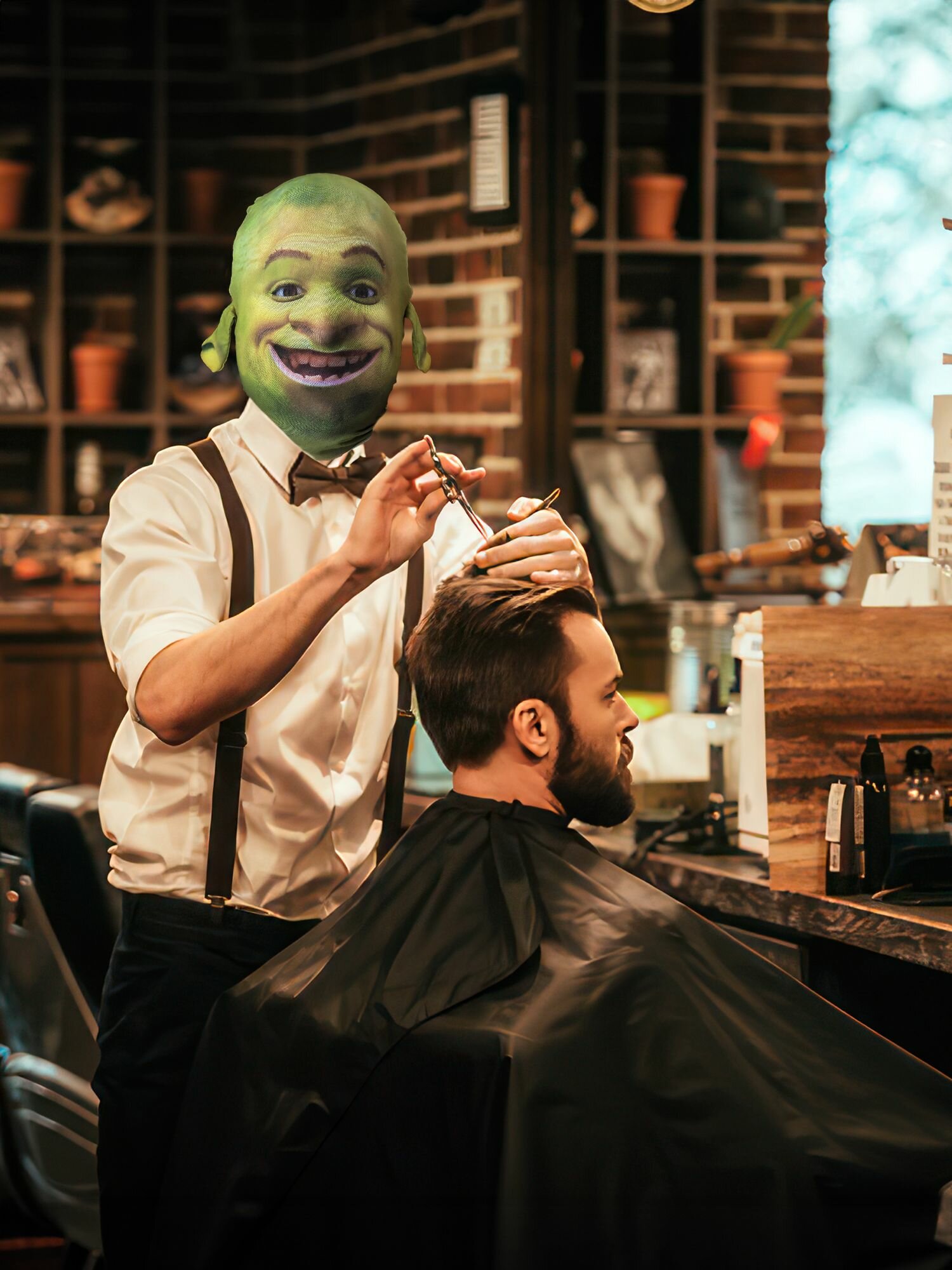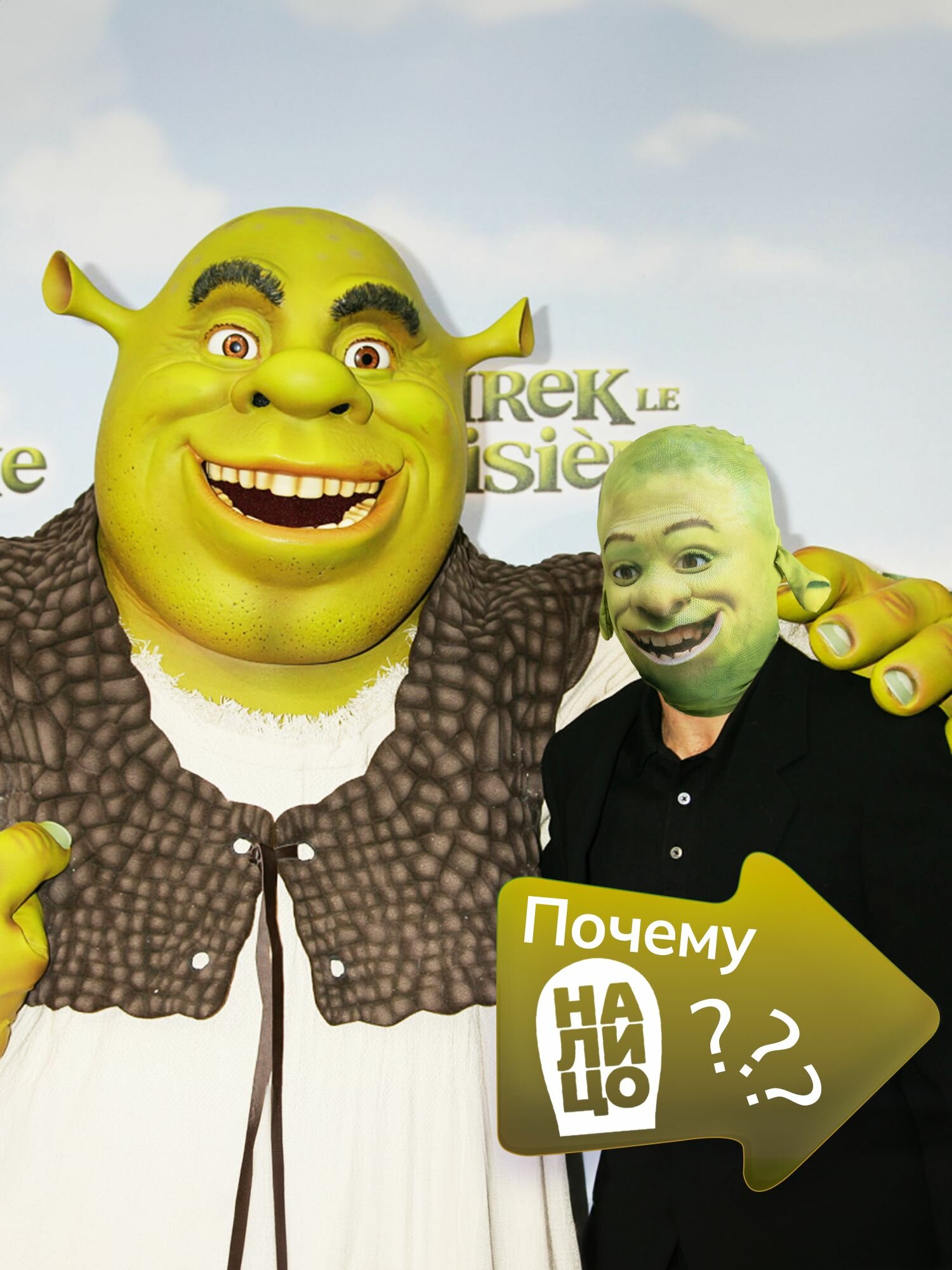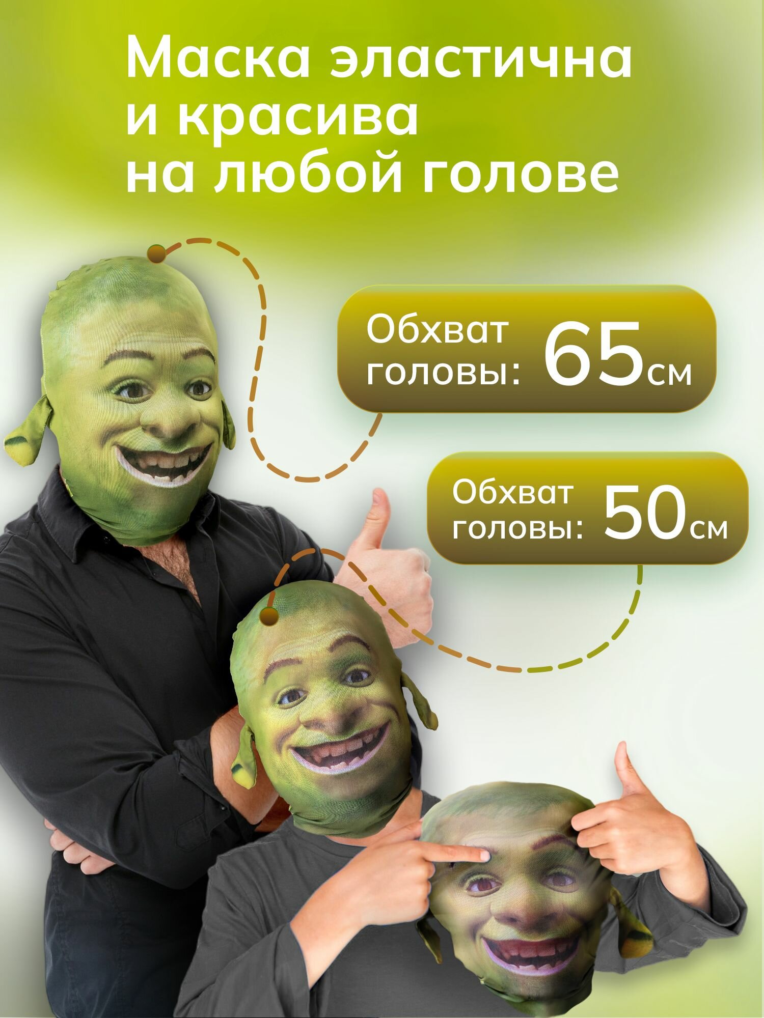 Карнавальная тканевая маска на лицо Шрек интересное: