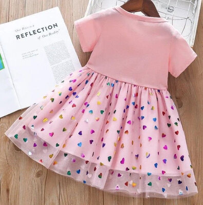 Платье для девочки Единорог - розовый с сердечком - размер 130