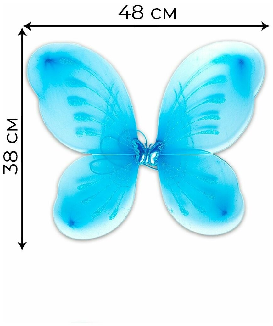 Карнавальный костюм новогодний крылья феи бабочки для девочки с юбкой, волшебной палочкой и ободком голубой 48*38см