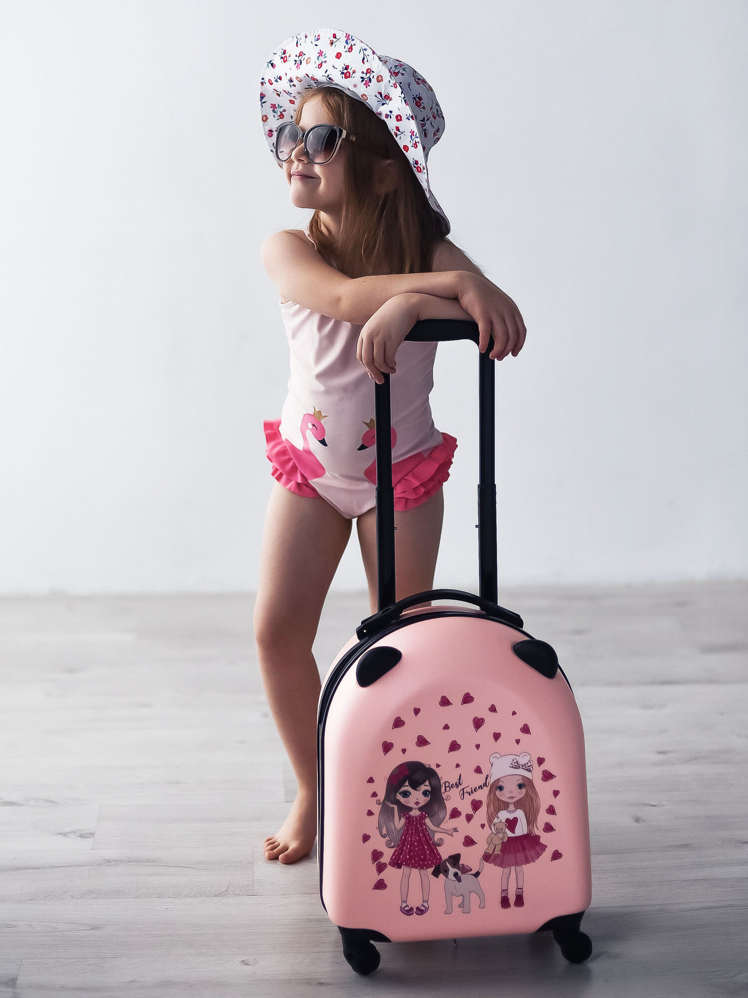 Купить Чемодан детский Lats четырехколесный, с ушками, Лучшие подруги, розовый (арт. 691)