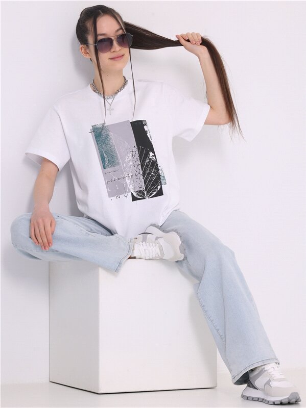 Купить Футболка женская белая с принтом плотная хлопок Апрель 1ЖДФК4217006/1190/31/*/2472/*/*/* белый,зеленый,серый 92-164