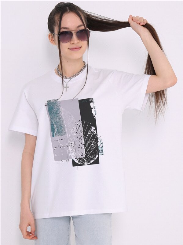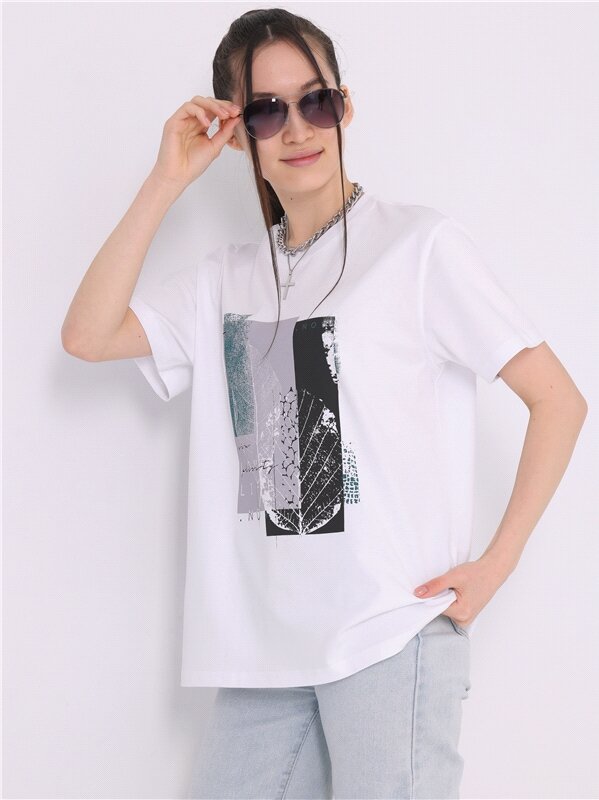 Футболка женская белая с принтом плотный хлопок Апрель 1ЖДФК4217006/1420/31/*/3394/*/*/* белый,коричневый,черный 84-164