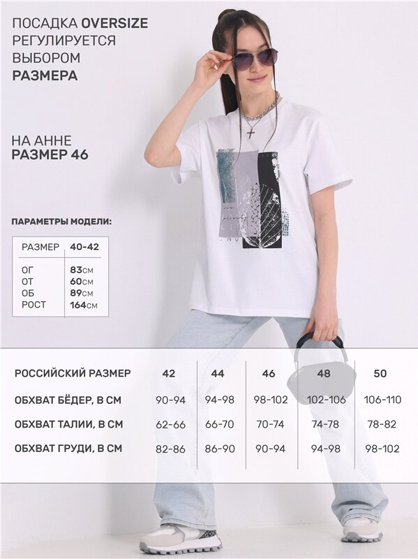 Футболка женская оверсайз с принтом Апрель 1ЖДФК4217006/1420/599/*/3400/*/*/* черный,белый 100-164
