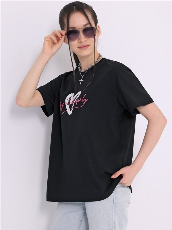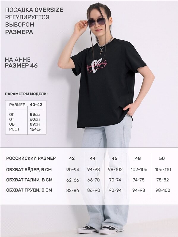 Футболка женская черная оверсайз с принтом хлопок 100% Апрель 1ЖДФК4217006/1420/599/*/3394/*/*/* черный,коричневый 92-164