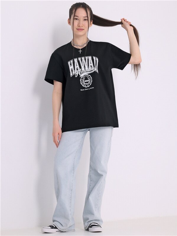Футболка женская оверсайз с принтом Апрель 1ЖДФК4217006/1420/599/*/3400/*/*/* черный,белый 100-164