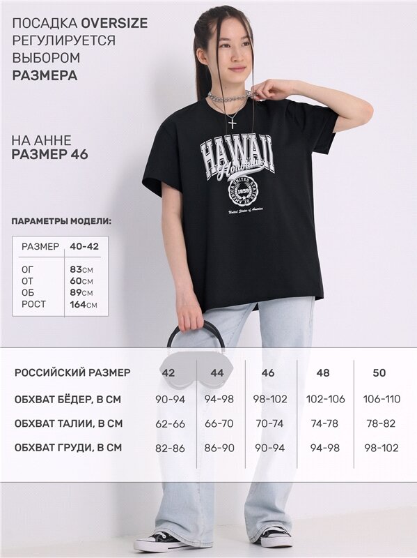 Купить Футболка женская оверсайз с принтом Апрель 1ЖДФК4217006/1420/599/*/3400/*/*/* черный,белый 88-164