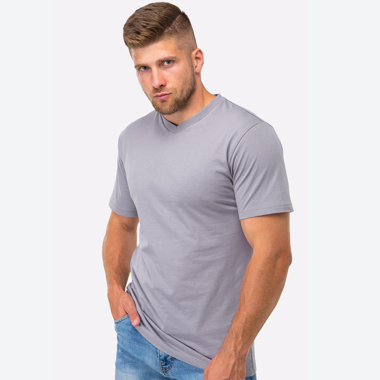 Купить Однотонная футболка мужская базовая с v-образным вырезом HappyFox, HF9124 размер 56, цвет серый
