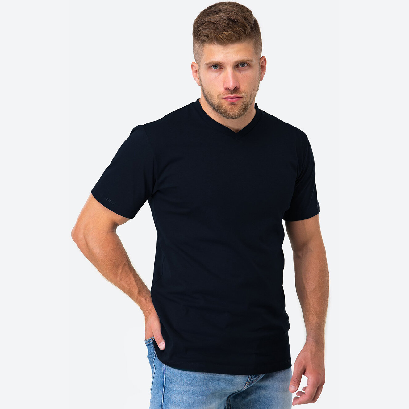 Однотонная футболка мужская базовая с v-образным вырезом HappyFox, HF9124 размер 48, цвет джинсовый