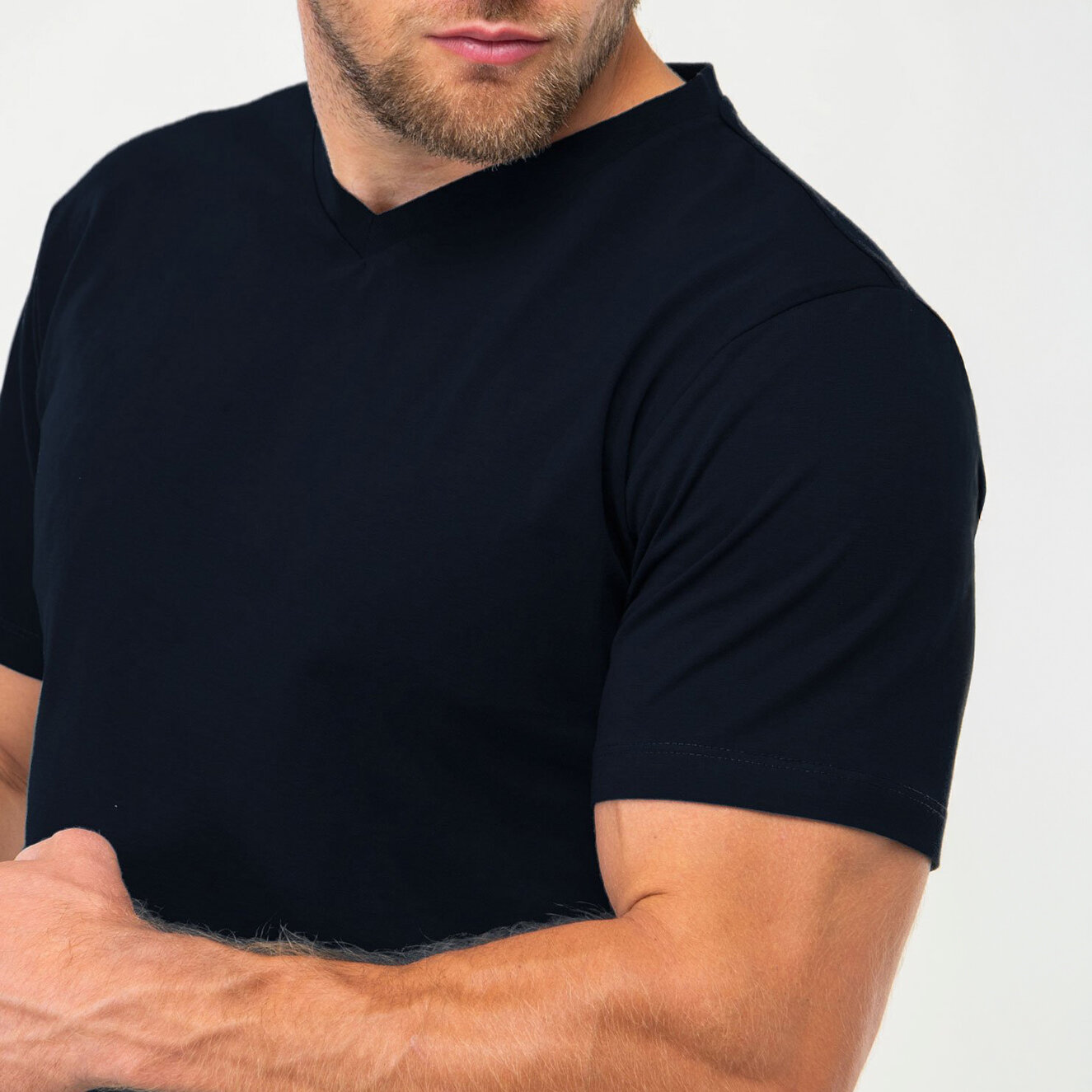 Однотонная футболка мужская базовая с v-образным вырезом HappyFox, HF9124 размер 50, цвет т.синий