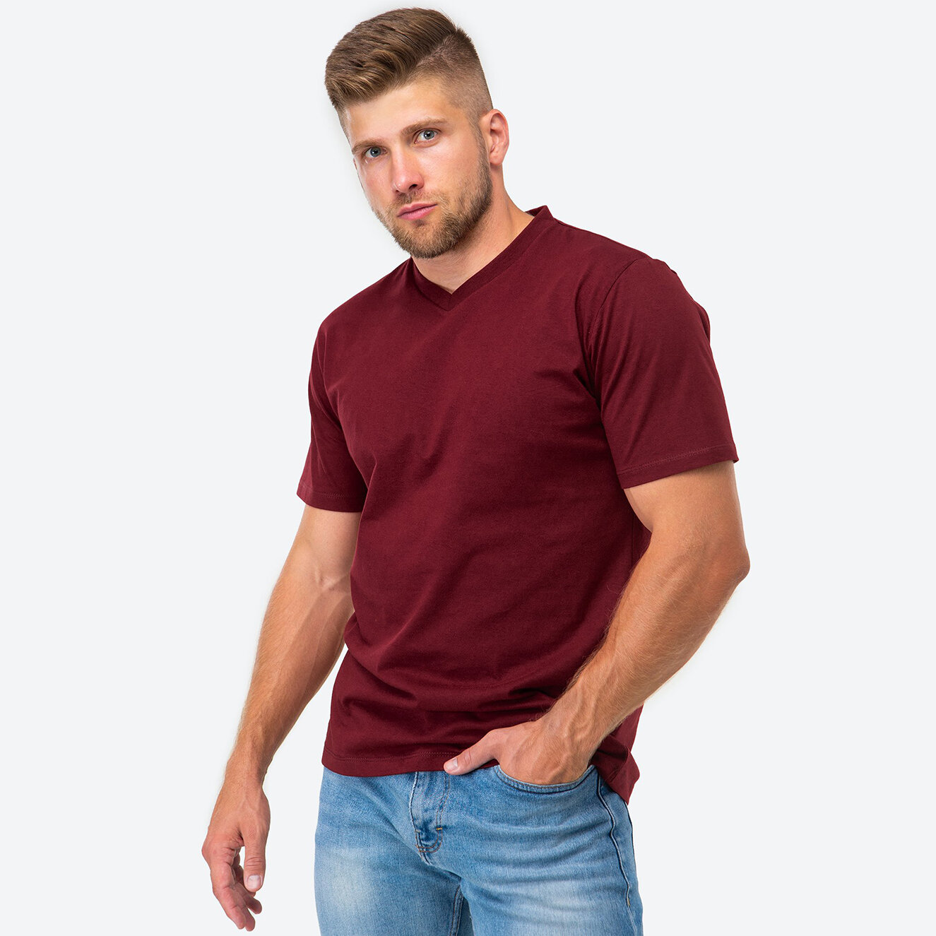 Купить Однотонная футболка мужская базовая с v-образным вырезом HappyFox, HF9124 размер 56, цвет бордовый