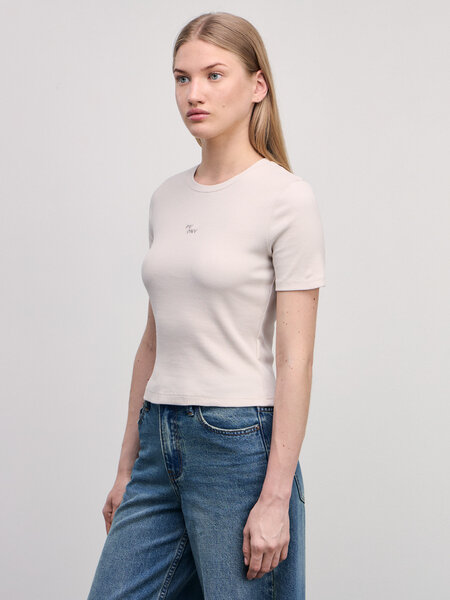 Zarina Базовая футболка в рубчик с вышивкой, цвет Кремовый/светлый беж, размер XS (RU 42), 4328514414-61