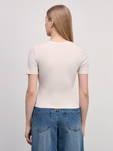 Купить Zarina Базовая футболка в рубчик с вышивкой, цвет Кремовый/светлый беж, размер S (RU 44), 4328514414-61