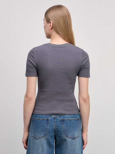 Купить Zarina Базовая футболка в рубчик с вышивкой, цвет Темно-серый, размер M (RU 46), 4328514414-37