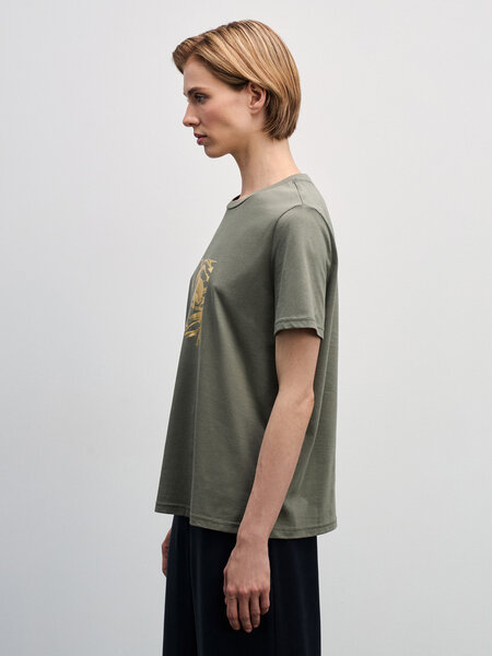 СохранитьZarina Базовая футболка из хлопка с принтом, цвет Хаки/оливковый, размер S (RU 44), 4327510410-13 интересное:
