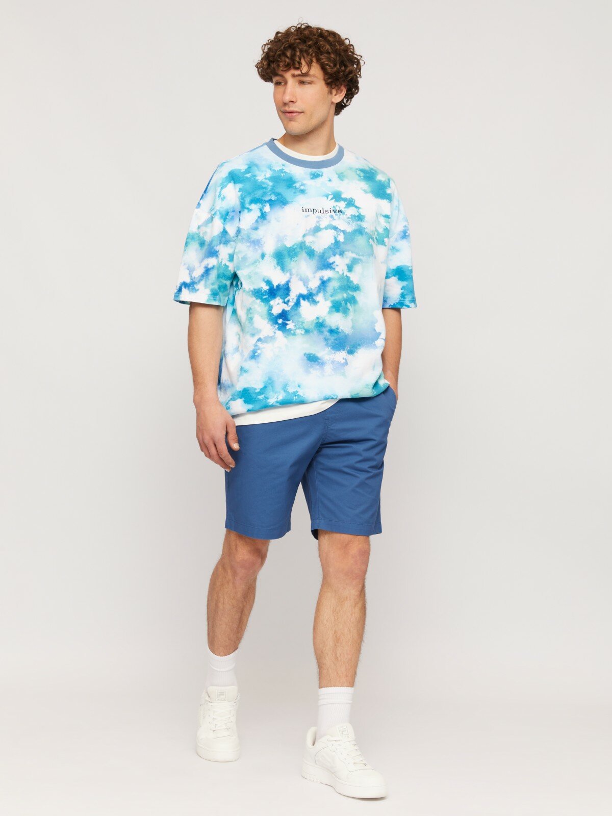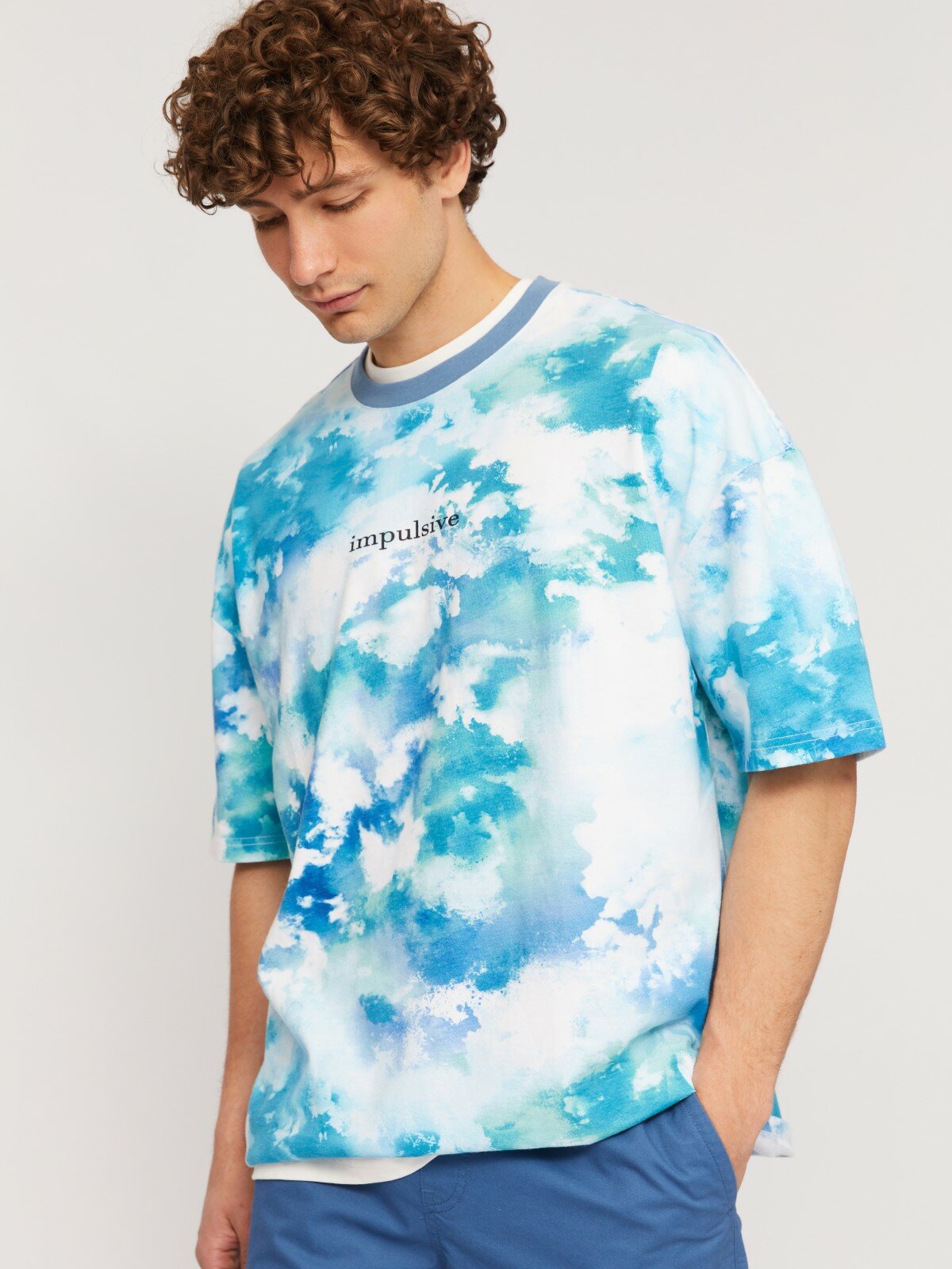 Футболка оверсайз из хлопка с тай-дай принтом, цвет Светло-голубой, размер L N14243239071