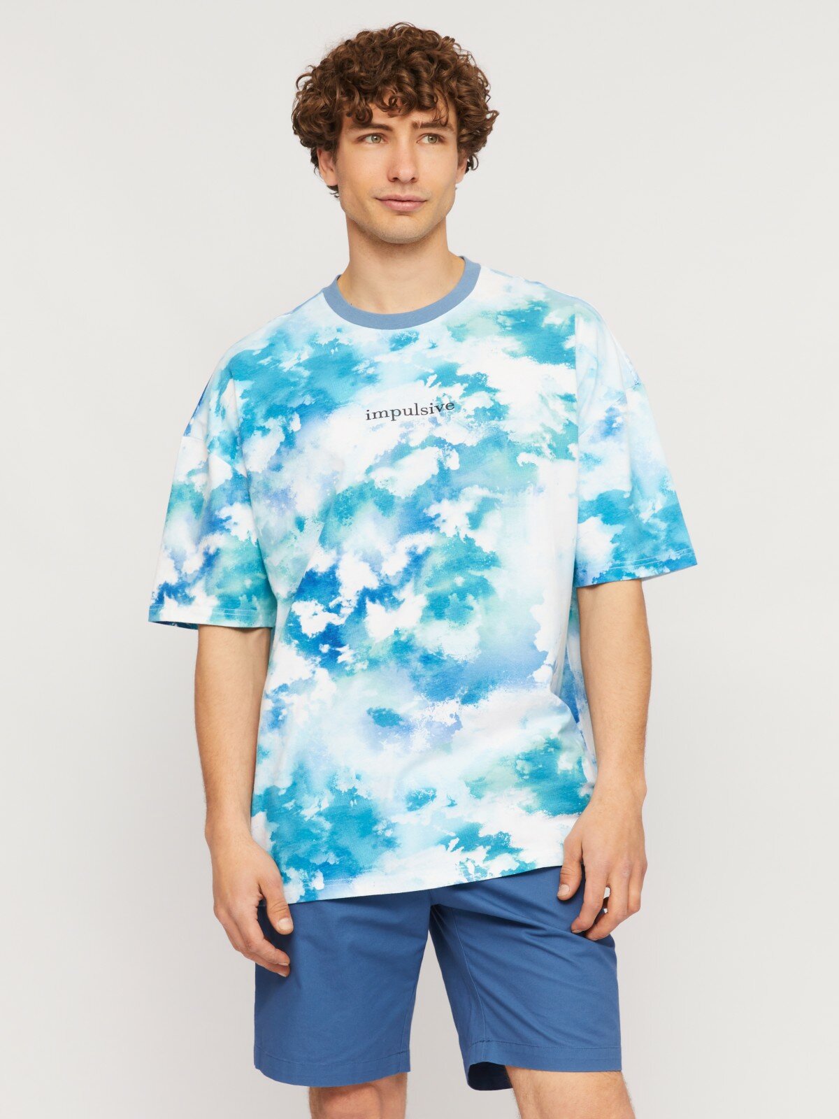 Футболка оверсайз из хлопка с тай-дай принтом, цвет Светло-голубой, размер XL N14243239071 интересное:
