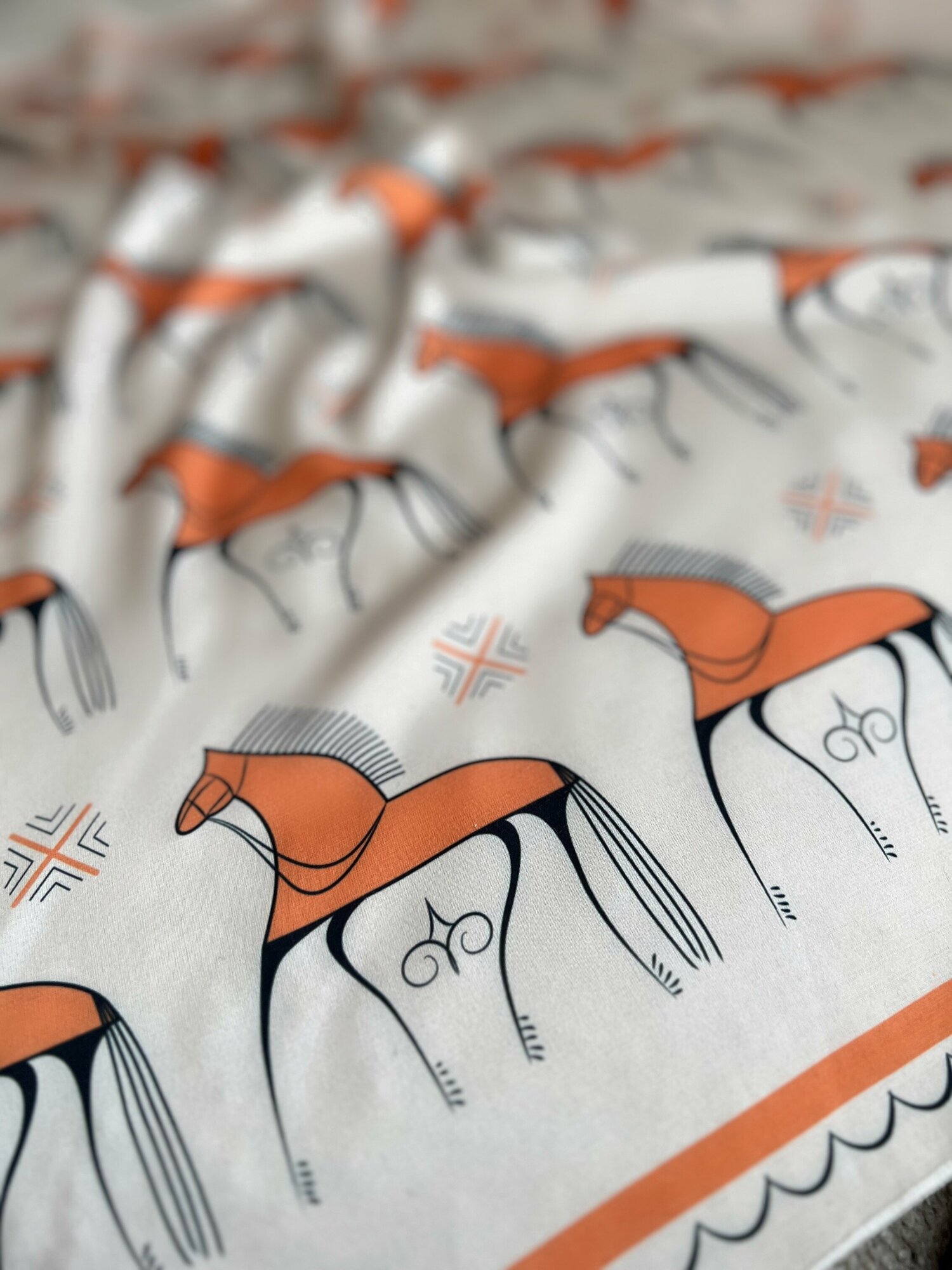 Шелковый платок шейный/на сумку/бандана с лошадьми
