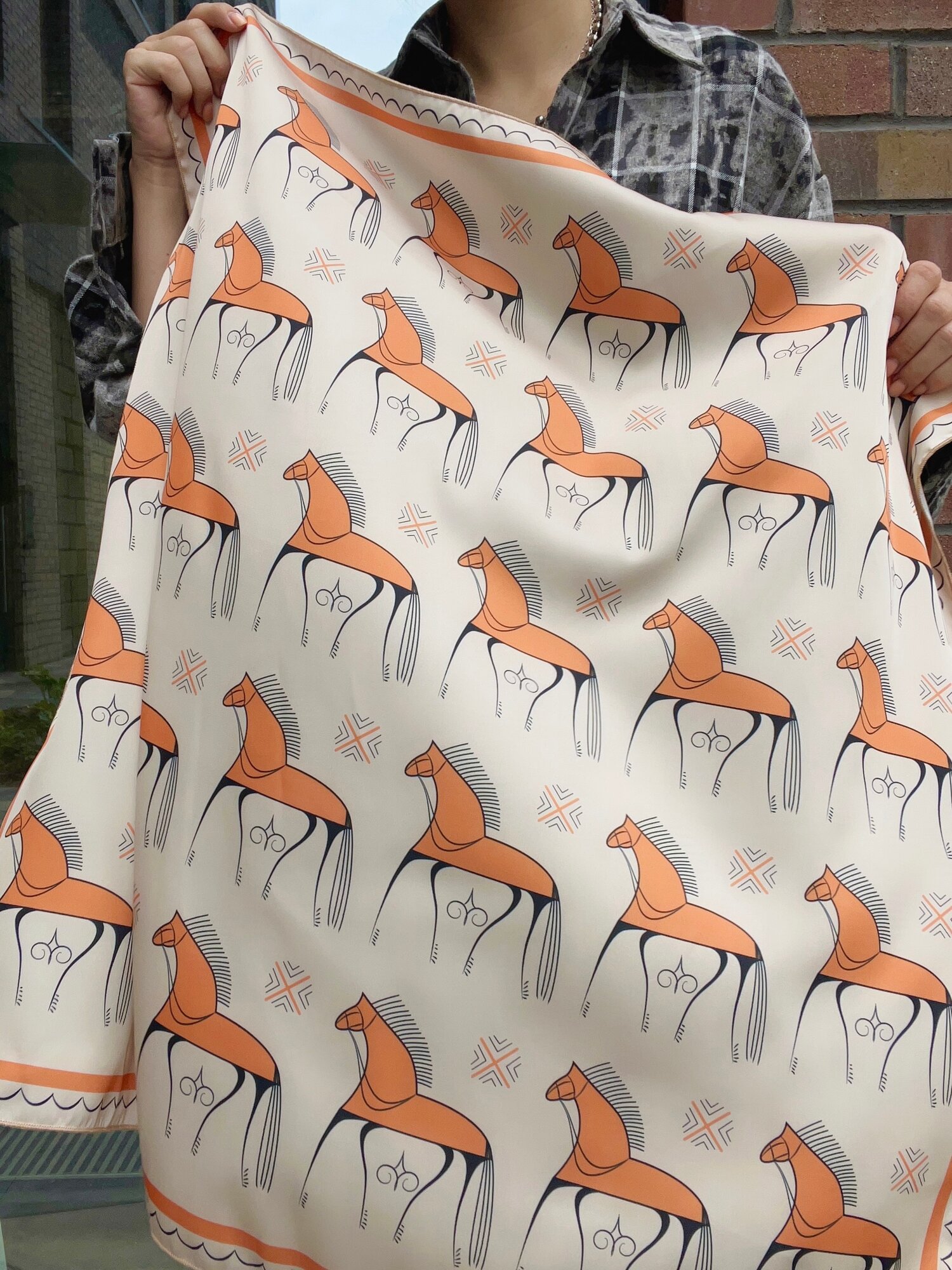 Шелковый платок шейный/на сумку/бандана с лошадью