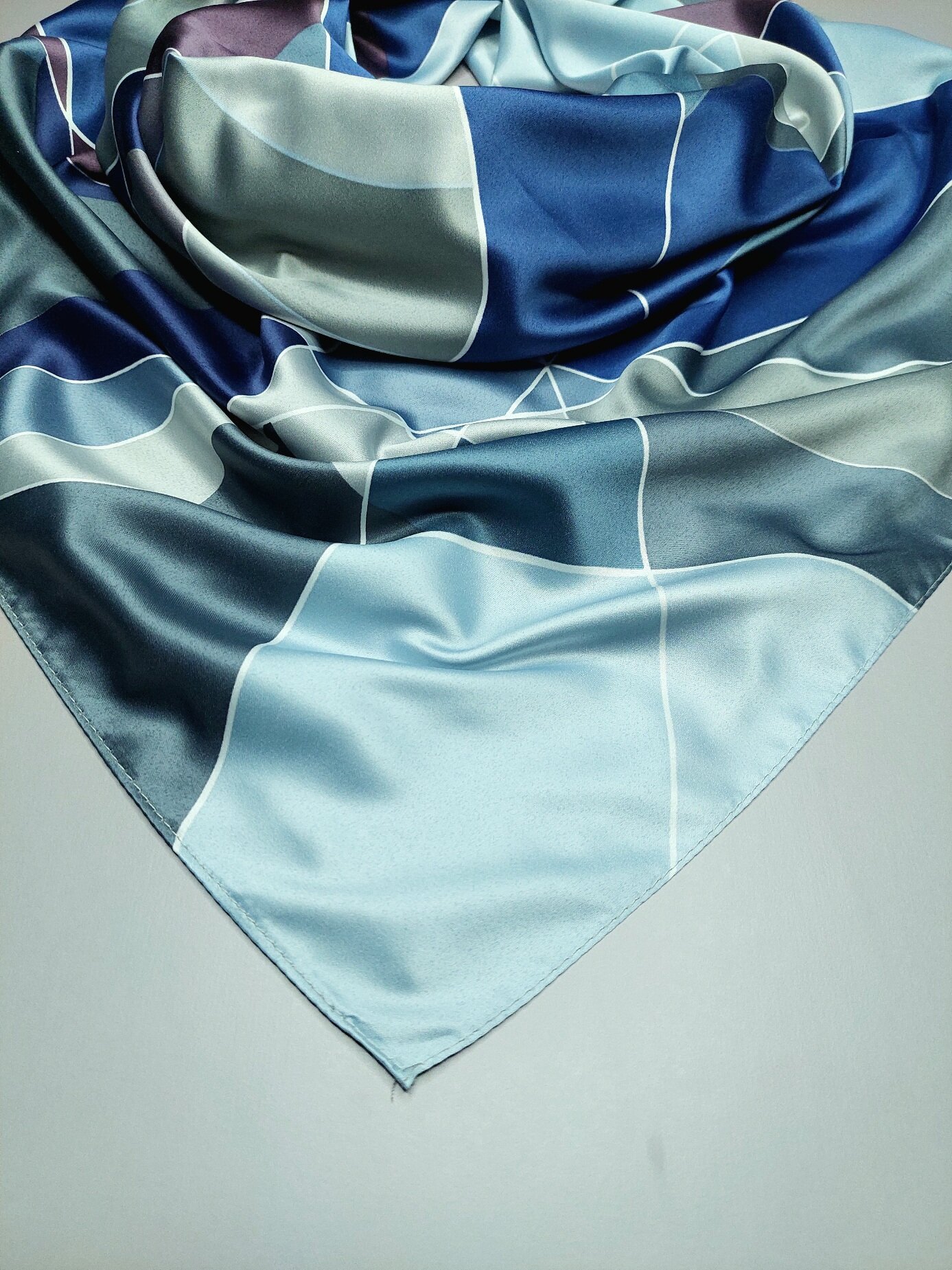 Купить Платок шелковый Геометрия синий