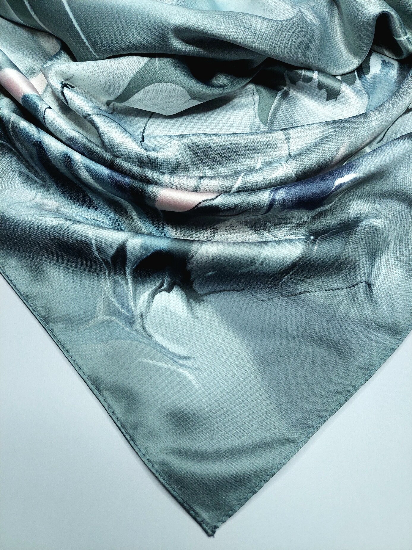 Платок женский шелковый светло-серый Цветы