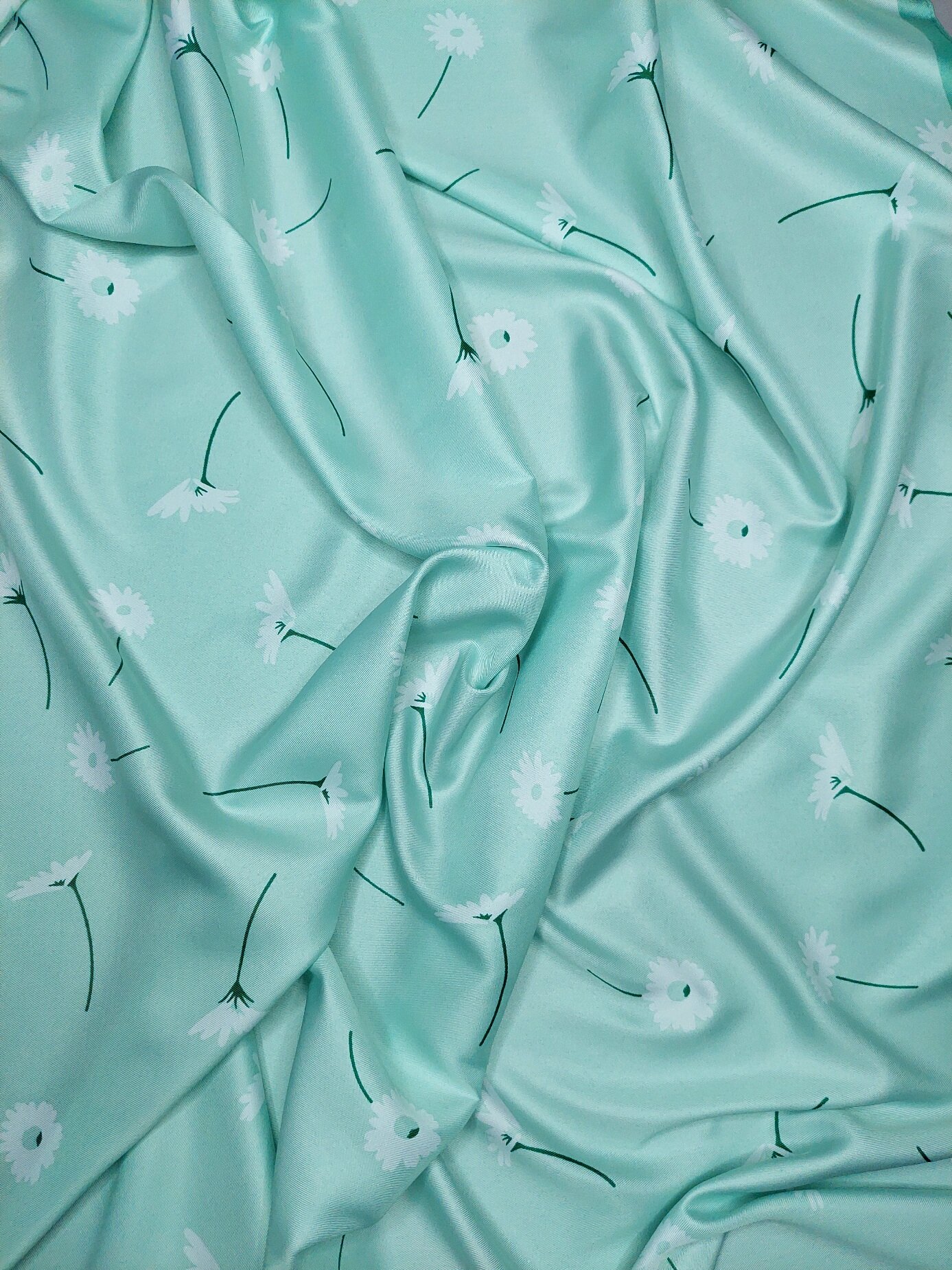 Платок женский шелковый Ромашки зеленый