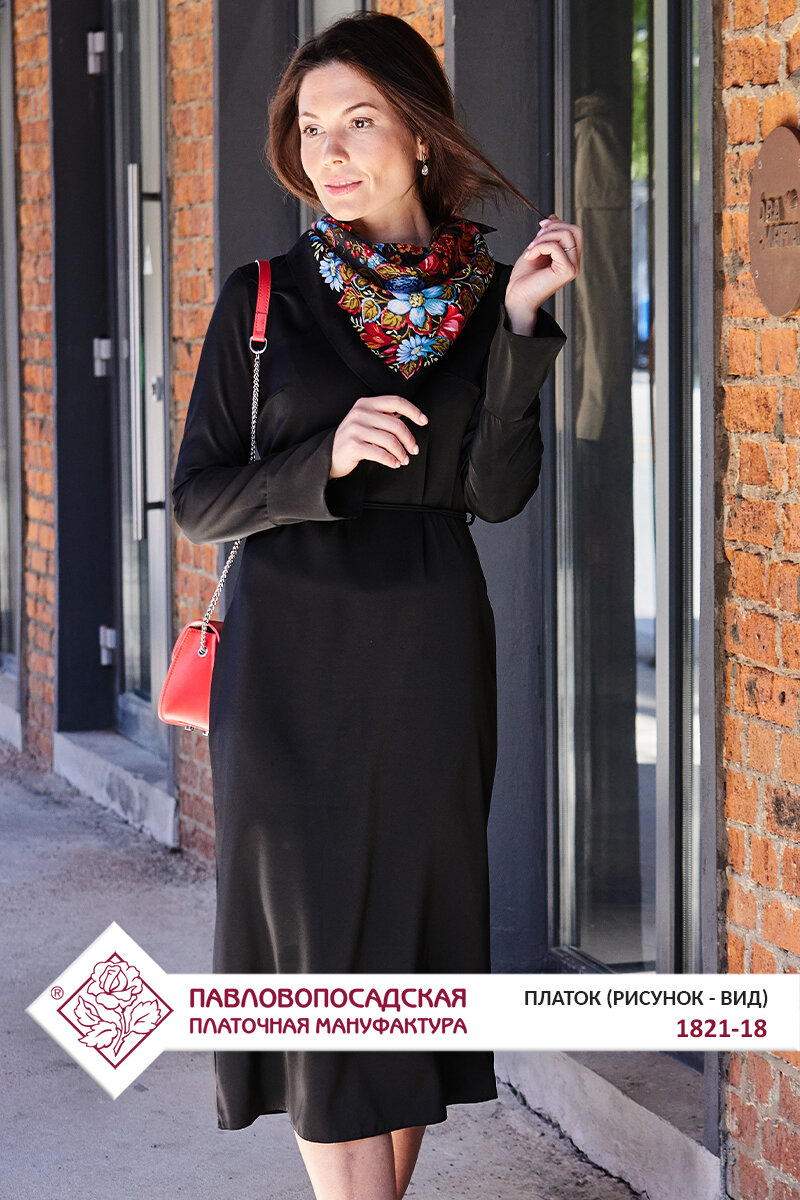 Платок женский шерстяной Павловопосадские платки 1821 Заветная мечта 18, черный, 72 х 72 см интересное: