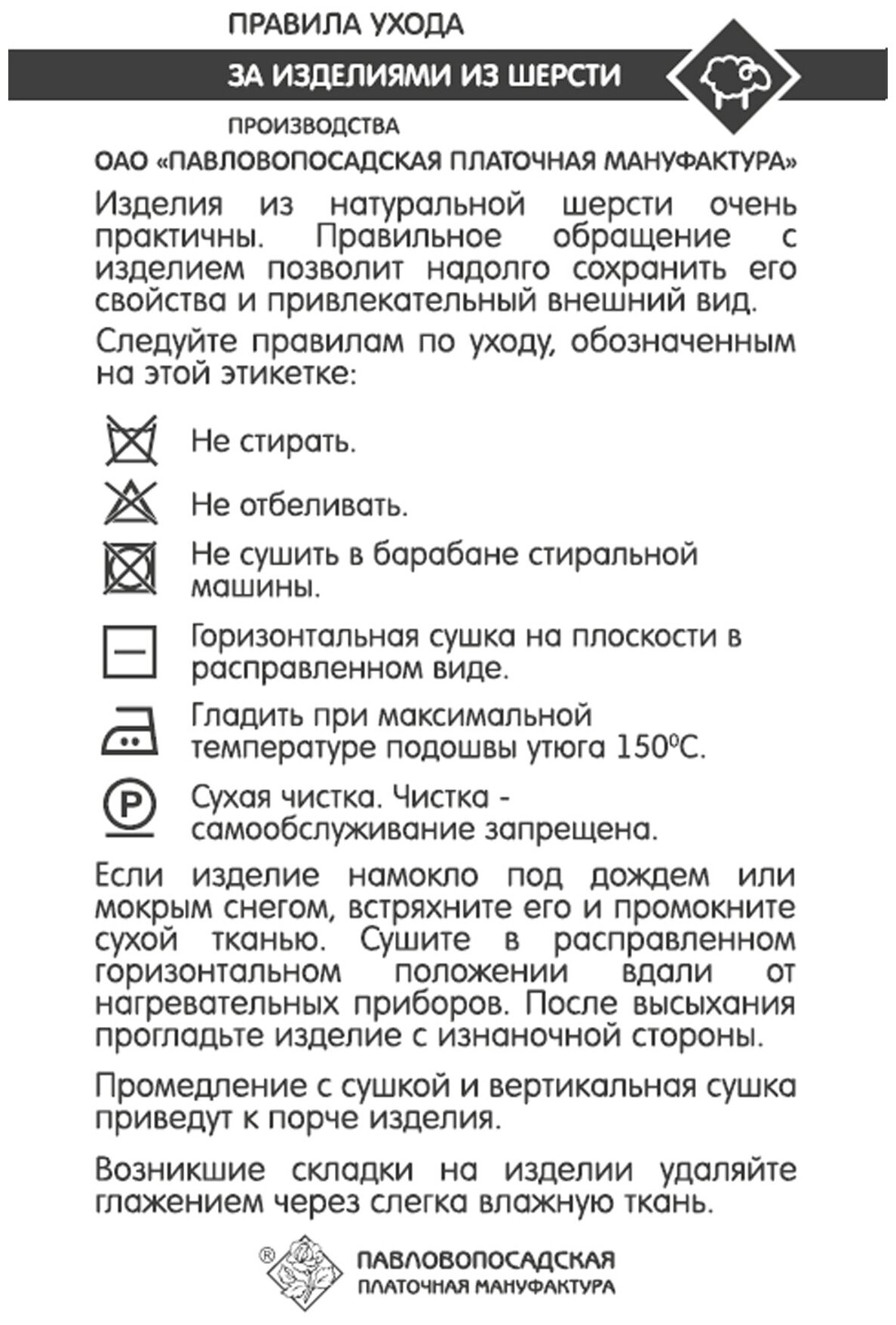 | Дополнительная информация | рекомендации по уходу: Рекомендации по уходу вы можете найти на этикетке или в карусели фотографий к данному артикулу. |