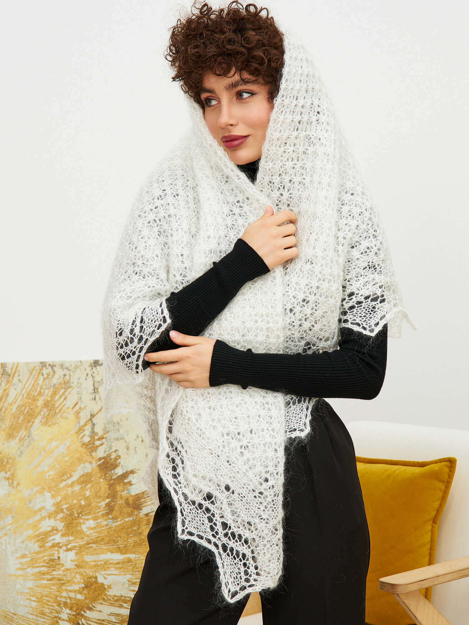Платок пуховый женский на голову теплый в подарок интересное: