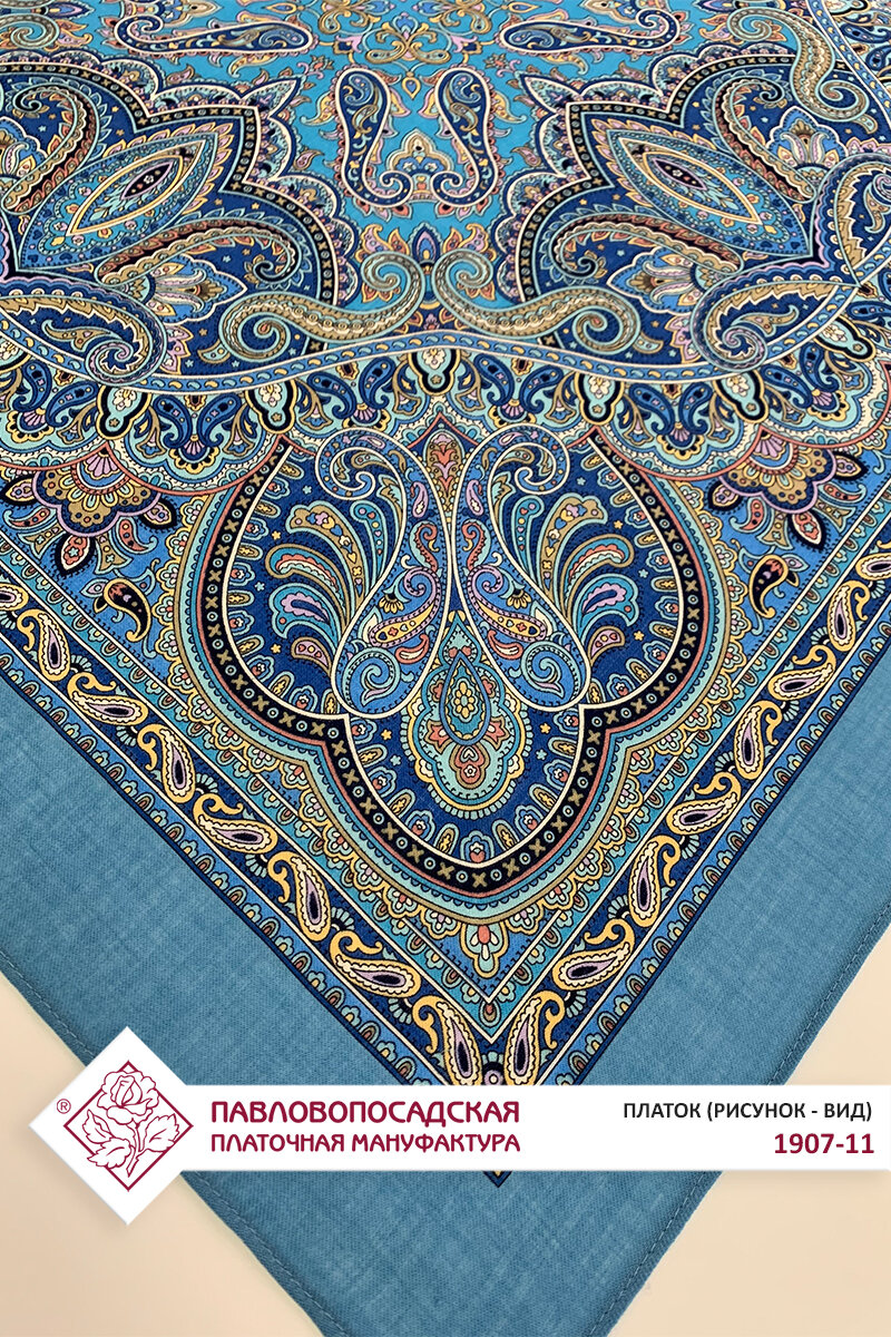 Платок Павловопосадская платочная мануфактура для женщин,89х89 см, синий, голубой