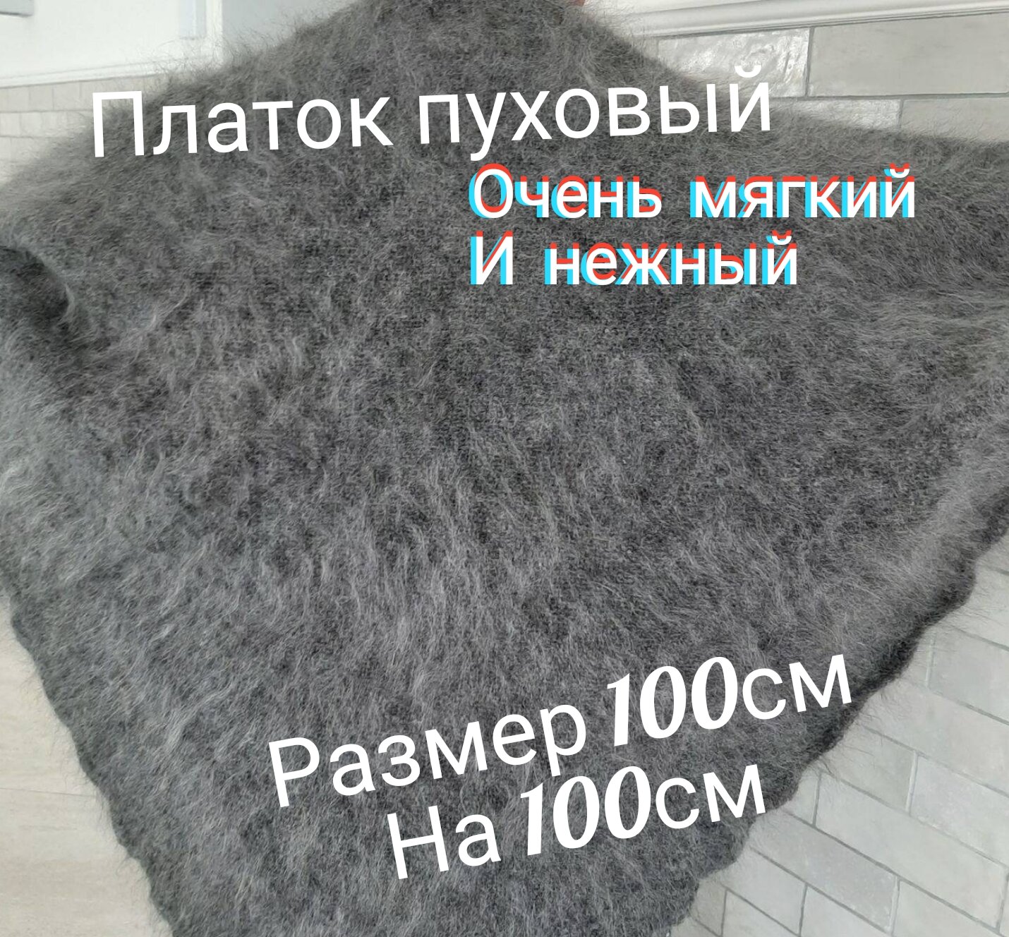 Платок пуховый натуральный,100/100см, серый интересное:
