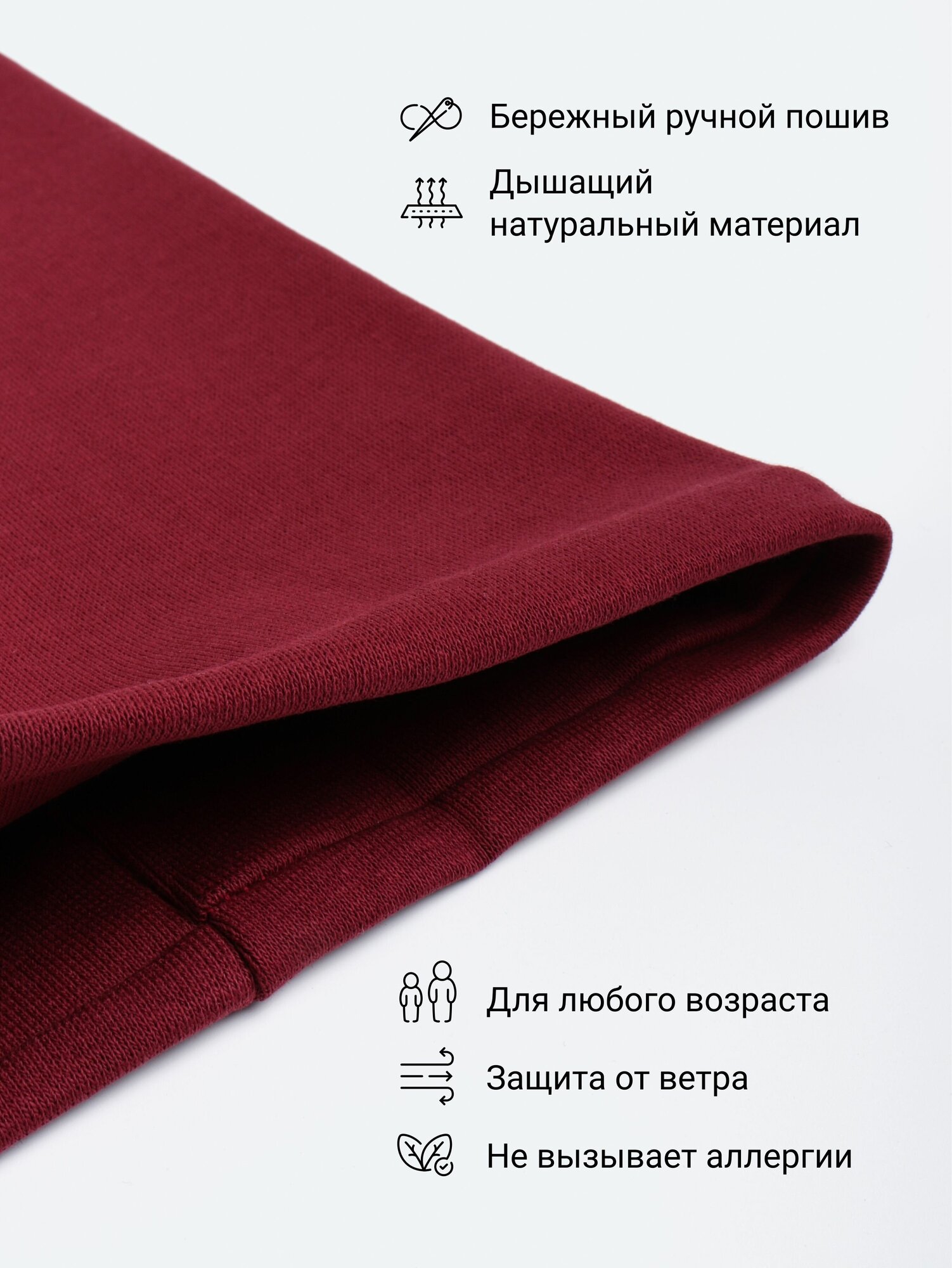 Снуд Бордовый Side to Side женский, мужской, подростковый, детский трикотажный двухслойный, бафф, хлопок.